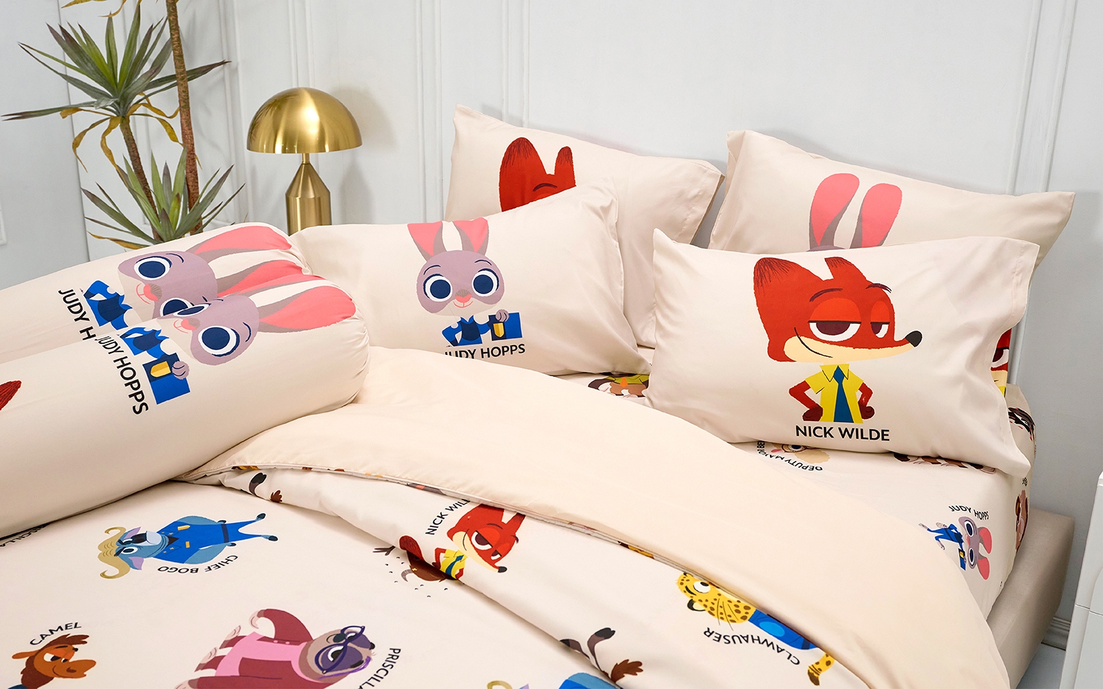 TULIP ชุดเครื่องนอน รุ่น TULIP Delight พิมพ์ด้วยระบบดิจิตอลปริ้น DLD052 ลิขสิทธิ์แท้ Disney Zootopia โทนสีอ่อน ดูอบอุ่น โชว์ความสนุกสนาน พิมพ์ลายอย่างมีมิติ สร้างบรรยากาศห้องนอนให้สนุกสนาน อบอุ่น พร้อมความนุ่มหลับสบายสุดๆ©Disney