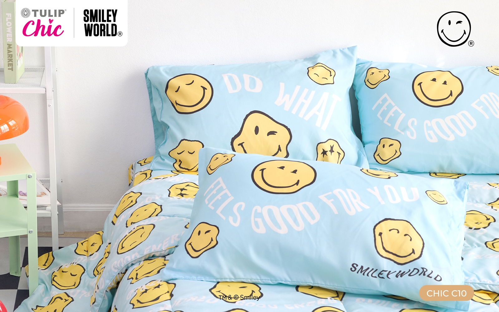 TULIP CHIC | SMILEYWORLD รุ่น CHIC C10 ลิขสิทธิ์แท้ SMILEYWORLD โทนสีฟ้าพาสเทล สดใส ร่าเริง เย็นสบาย สร้างบรรยากาศห้องนอนดูสดชื่น มีพลัง สนุกสนาน น่าพักผ่อน