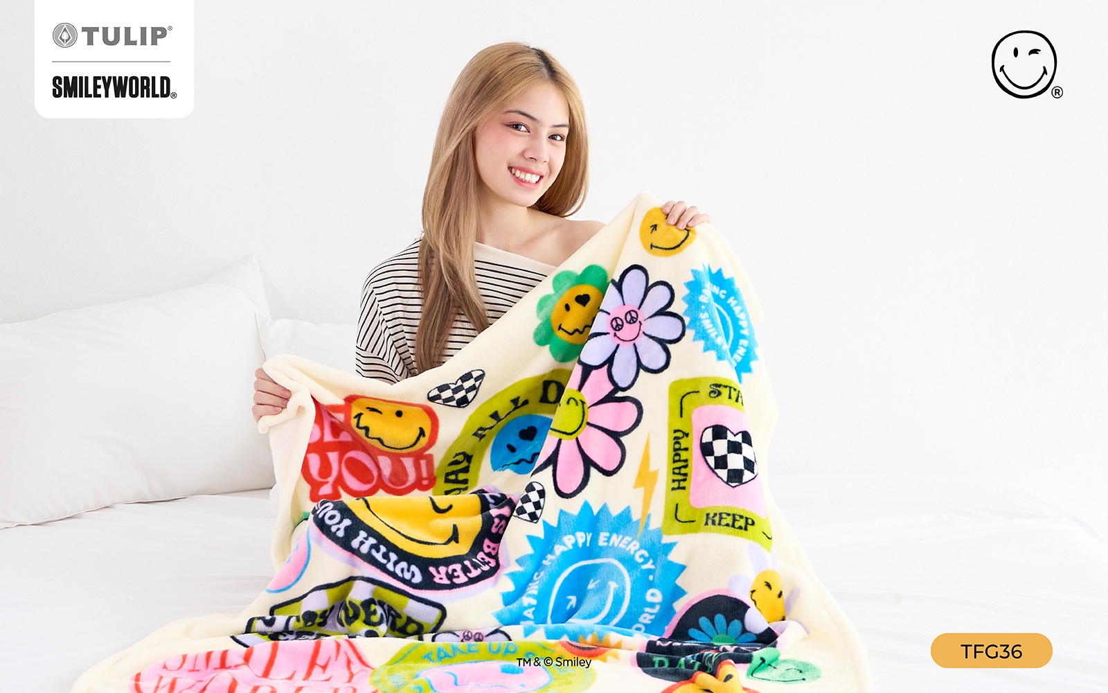 #Tulip #Fleece #ลิขสิทธิ์แท้ #สไมลีย์เวิร์ล #SmileyWorld #ผ้าห่มพกพาง่าย #นุ่ม#ขนแกะเทียม
