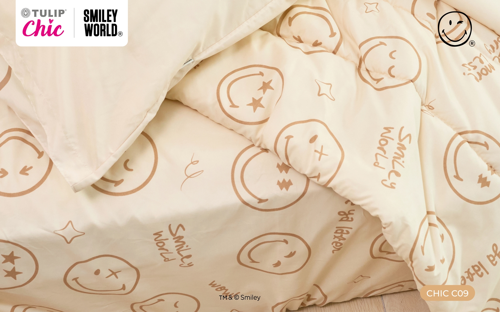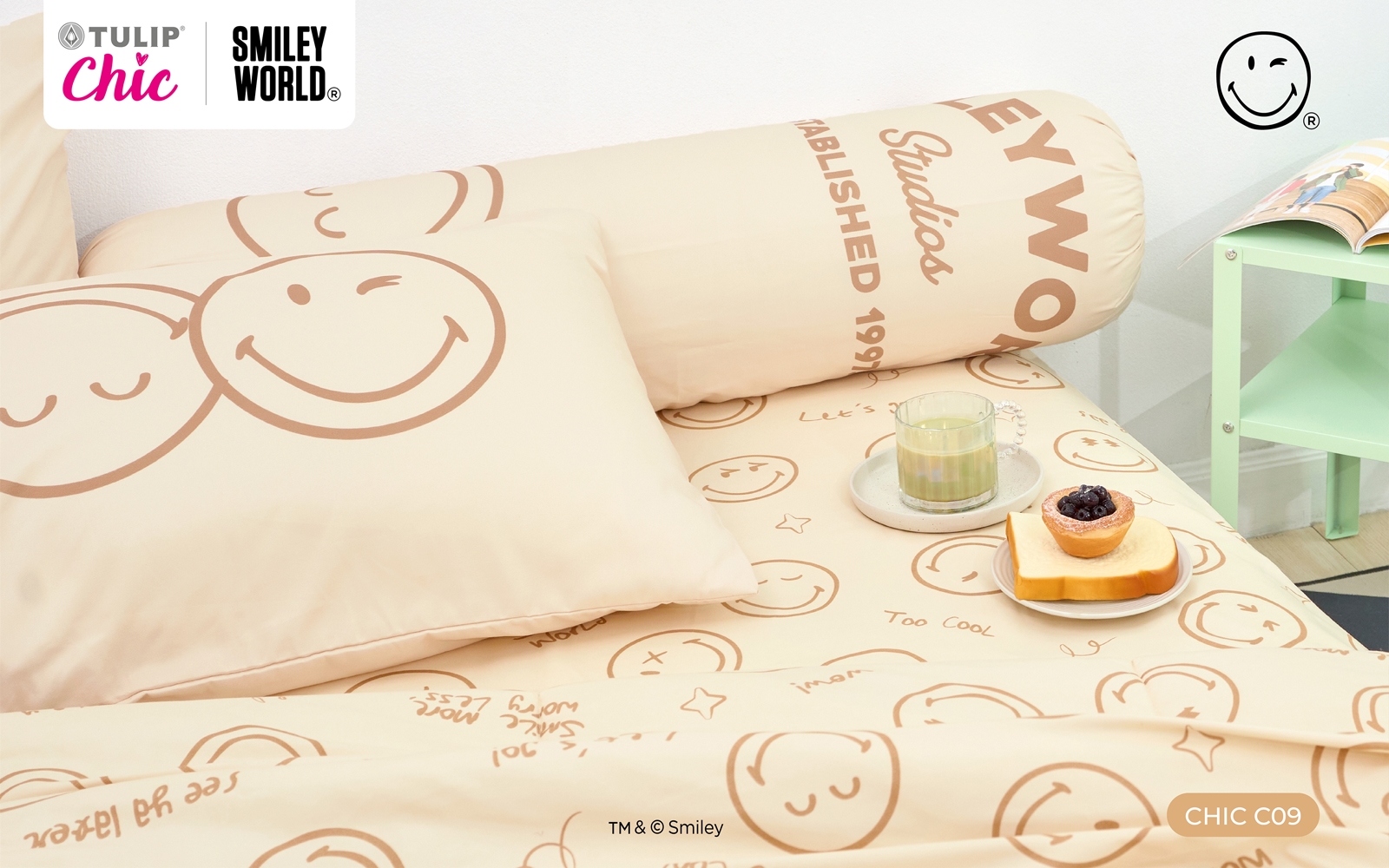 TULIP CHIC | SMILEYWORLD รุ่น CHIC C09 ลิขสิทธิ์แท้ SMILEYWORLD โทนสีครีม นวลตา สร้างบรรยากาศห้องนอนดูสว่างและอบอุ่น ผ่อนคลาย ลาย Smiley รอยยิ้มแห่งความสุข ให้ความน่ารัก โทนสีสุภาพ