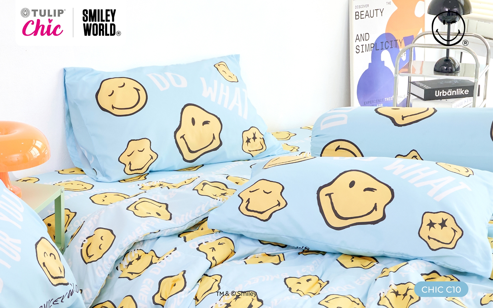 TULIP CHIC | SMILEYWORLD รุ่น CHIC C10 ลิขสิทธิ์แท้ SMILEYWORLD โทนสีฟ้าพาสเทล สดใส ร่าเริง เย็นสบาย สร้างบรรยากาศห้องนอนดูสดชื่น มีพลัง สนุกสนาน น่าพักผ่อน