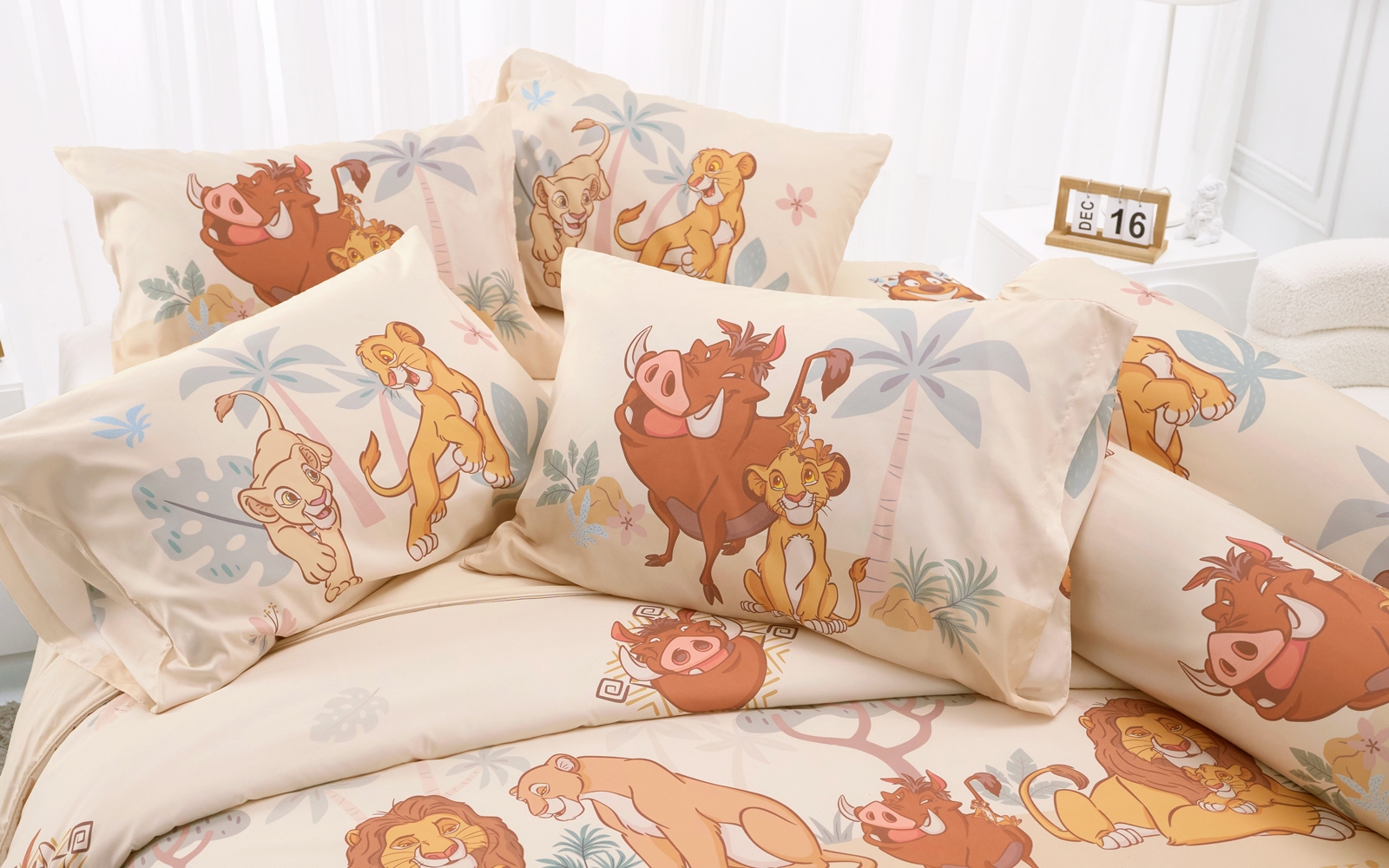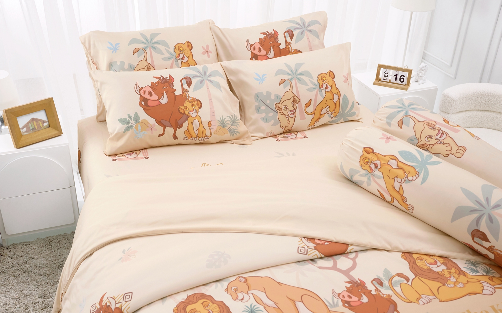 ชุดผ้าปูที่นอน The Lion King [DLD055] ลิขสิทธิ์แท้ดิสนีย์ ที่ยกขบวนแก๊งเพื่อนซี้ ซิมบ้า ทีโมน และพุมบ้า มาแจกความสดใสบนโทนสีครีมส้มสุดอบอุ่นสไตล์ทุ่งหญ้าสะวันนา ทิ้งความเหนื่อยล้าแล้วมาหลับพักผ่อนแบบ "ฮาคูนา มาทาทา" ด้วยเนื้อผ้าไมโครพลัสทอละเอียด มอบสัมผัสนุ่มละมุน ไม่ระคายเคืองผิว ผ้าปูที่นอนสามารถรัดมุมที่นอนหนาสูงสุดได้ถึง 13 นิ้ว ปูเรียบเป๊ะไม่มีหลุดหลวม มาพร้อมดีไซน์ผ้านวมทูโทนพลิกอีกด้านเป็นสีพื้น เพิ่มความสนุกกับการแต่งห้องไปอีกขั้น!