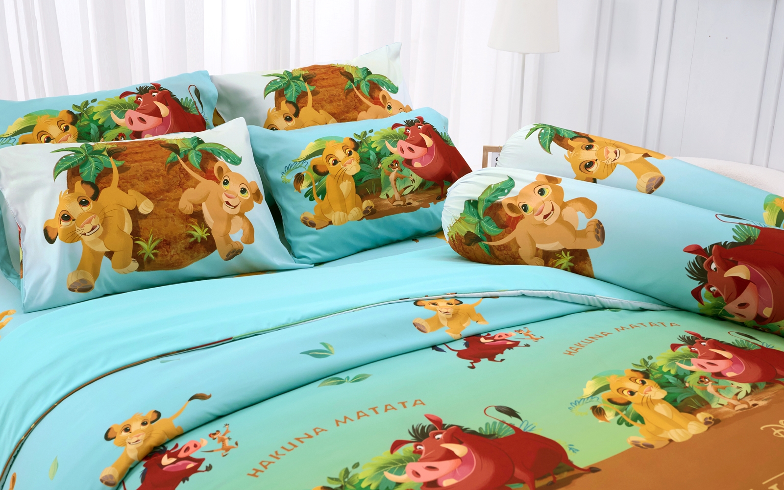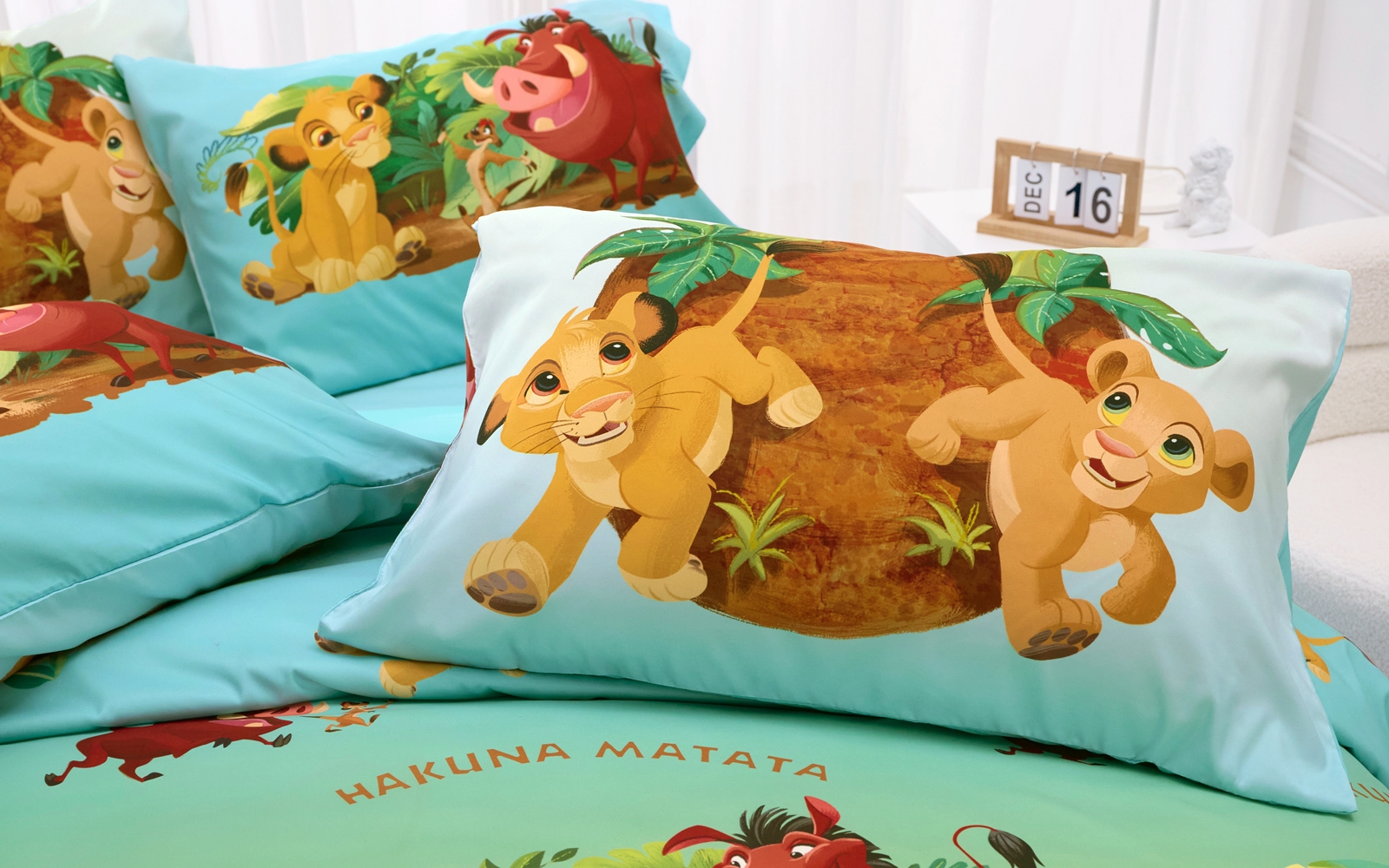 ชุดผ้าปูที่นอน The Lion King [DLD056] ลิขสิทธิ์แท้ดิสนีย์ ที่ยกขบวนแก๊งเพื่อนซี้ ซิมบ้า ทีโมน และพุมบ้า เข้าสู่โลกของเจ้าป่า ด้วยลายและสีสันสุดคมชัด ให้ความรู้สึก "ฮาคูนา มาทาทา" ลวดลายสมจริงเหมือนเข้าไปอยู่ในโลกของการ์ตูนที่คุณชื่นชอบ ด้วยเนื้อผ้าไมโครพลัส ทอละเอียดมอบสัมผัสนุ่มละมุน ไม่ระคายเคืองผิว ผ้าปูที่นอนสามารถรัดมุมที่นอนหนาสูงสุดได้ถึง 13 นิ้ว ปูเรียบเป๊ะไม่มีหลุดหลวม มาพร้อมดีไซน์ผ้านวมทูโทนพลิกอีกด้านเป็นสีฟ้าเทอร์ควอยซ์ เพิ่มความสนุกกับการแต่งห้องไปอีกขั้น